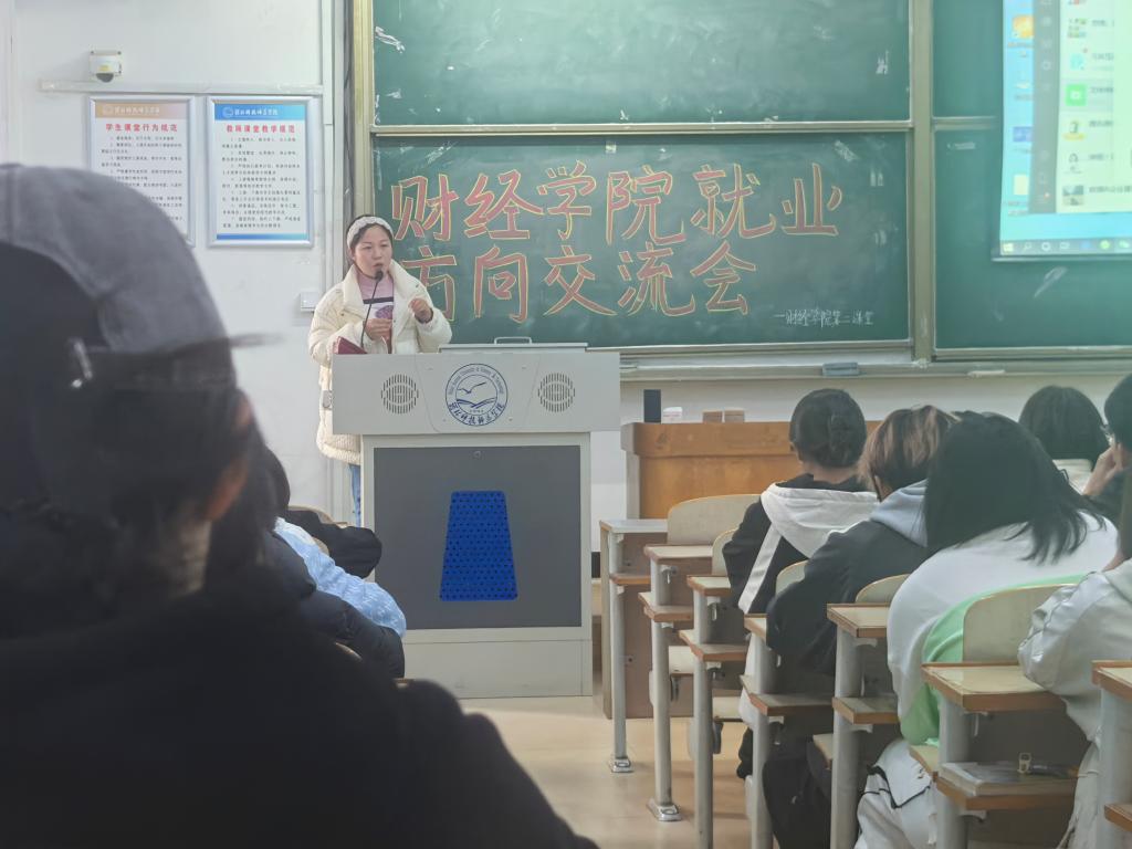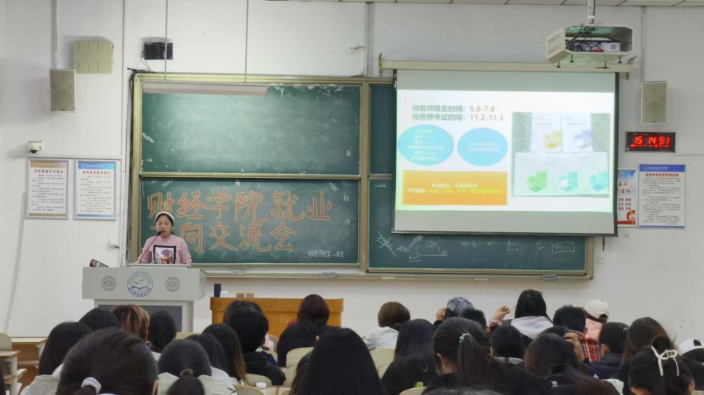 交流会开始,袁舒老师针对财务管理专业和财务会计教育专业的就业、考公、考研一一作出讲解。在分享过程中,袁舒老师着重强调了考取证书的重要性,并鼓励同学们将来成为高端人才。最后,她作出总结,无论是哪种方向,都要努力,不能有退缩心理。