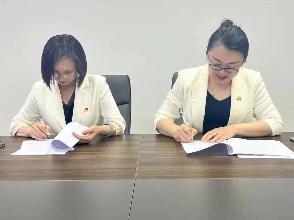 图为学院党委书记李强华(左)与秦皇岛博物馆副馆长孙昕(右)签约现场