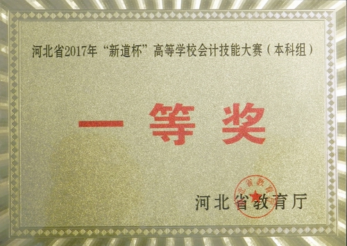 2017年12月2日,由河北省教育厅主办,河北地质大学承办,新道科技股份有限公司协办的河北省2017年“新道杯”高等学校会计技能大赛在河北地质大学隆重举行。大赛分为高职组、本科组和教师组,共吸引了95支队伍、近500名师生参加。我院选派的两个团队代表学校分获本科组一等奖和二等奖。
